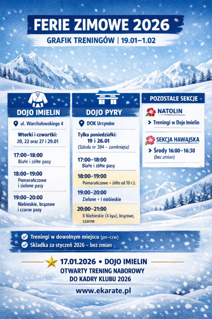 ZAPRASZAMY 17.01.26r. do Dojo Imielin na Otwarty Trening Naborowy do Kadry Klubu 2026.