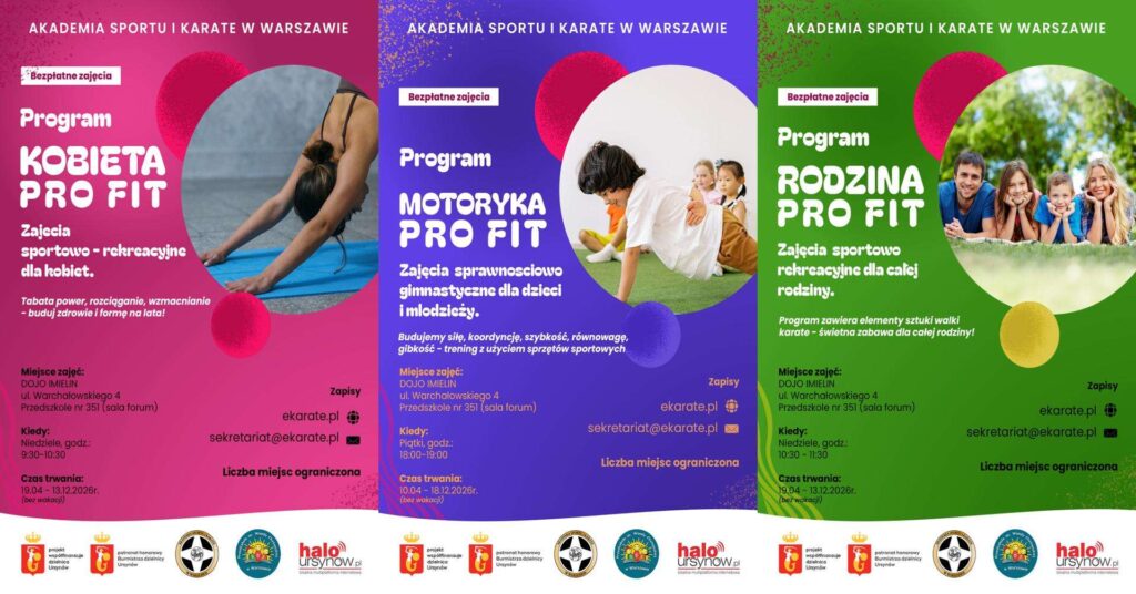 Z radością informujemy o kolejnym naborze do 3 cykli BEZPŁATNYCH programów ”PRO FIT” dla Mieszkańców Ursynowa!